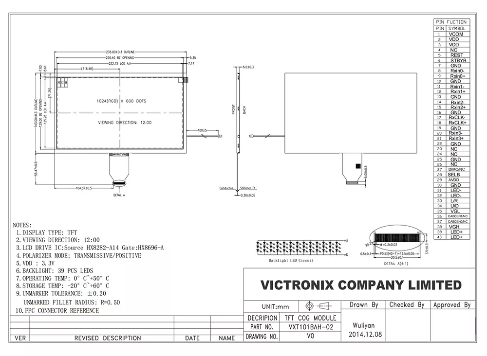 VXT101BAH-02 هي وحدة TFT-LCD. وهي تتألف من لوحة TFT-LCD ، برنامج تشغيل IC ، FPC ، وحدة إضاءة خلفية. تحتوي منطقة العرض 10.1 بريد تحتوي على 1024 × 600 بكسل ويمكنها عرض ما يصل إلى 16.7 مليون ألوان. يتوافق هذا المنتج مع المعيار البيئي لـ ROHS